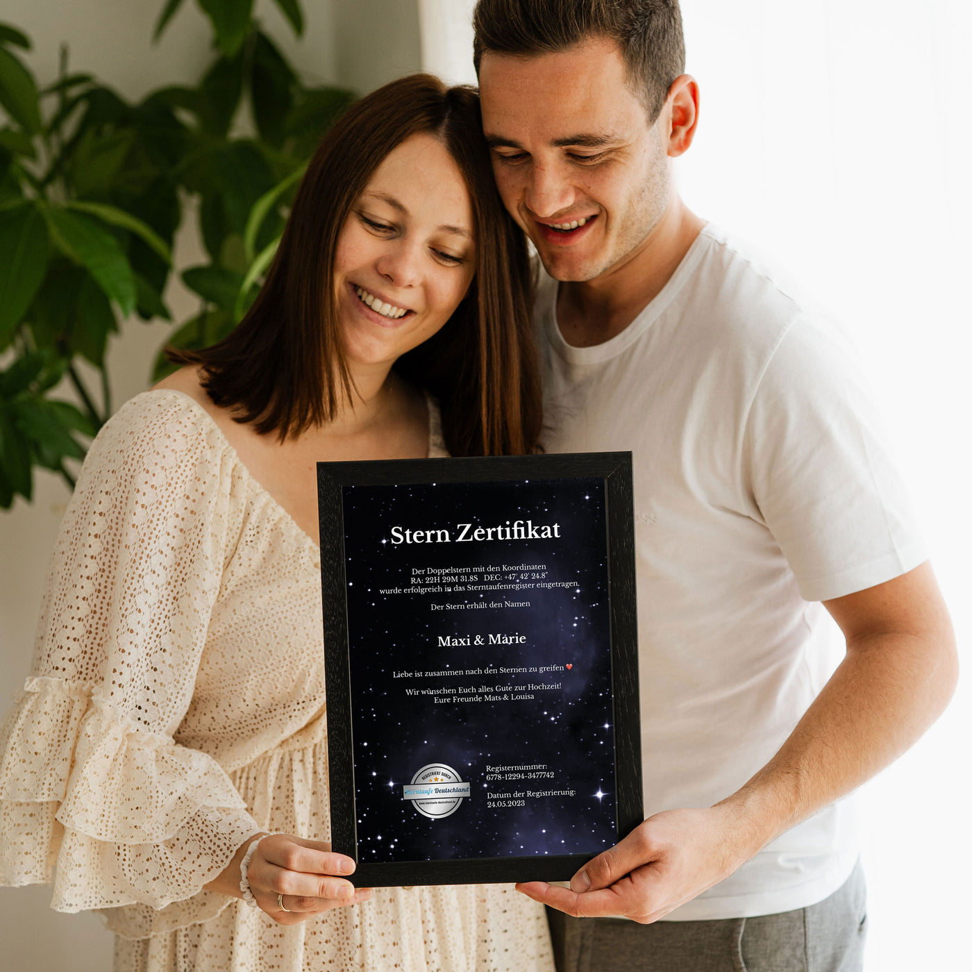 Du erhältst ein personalisiertes Sternzertifikat für den von dir getauften Stern. Wir bieten eine große Auswahl an verschiedenen Designs, sowie die Möglichkeit, eine persönliche Widmung hinzuzufügen.